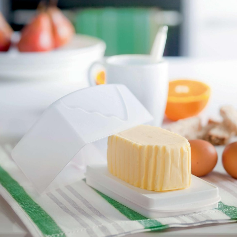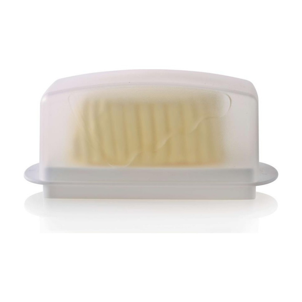 Tereyağı tabağı - tereyağını taze tutmak ve zarif bir şekilde servis etmek için. Avantajları Yağ kutusu bir taban ve bir kapaktan oluşur. Taban çift taraflıdır - bir tarafı düz, diğer tarafı büyük bir parça tereyağı saklamanıza olanak tanıyan bir girintiye sahiptir. Tabanın her iki yanında bulunan küçük kulplar Yağ Kutusunun taşınmasını kolaylaştırır. Taban servis için kullanılabilir. Kapak, Yağ Kutusunun içindekileri yabancı kokulardan güvenilir bir şekilde korur ve kapaktaki dalgalı çıkıntılar sayesinde tek elle açılması uygundur. Yağ buzdolabı kapısında saklanabilir. Masdish'te ayrıca krem peynir ve ezme saklayıp servis edebilirsiniz.