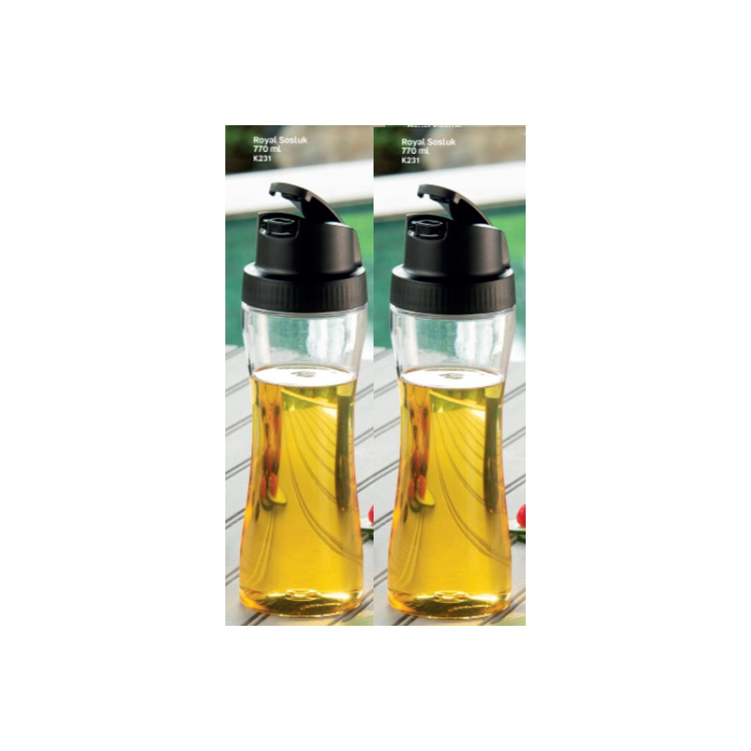 • Yağlarınızı, sirkelerinizi, soslarınızı (soya vb.) saklamak ve kolayca dökmek için yeni Royal Sosluk 770 ml karşınızda! Şık kavisli tasarımı ve tek elle açma, yemek pişirirken veya servis yaparken şişelemek için