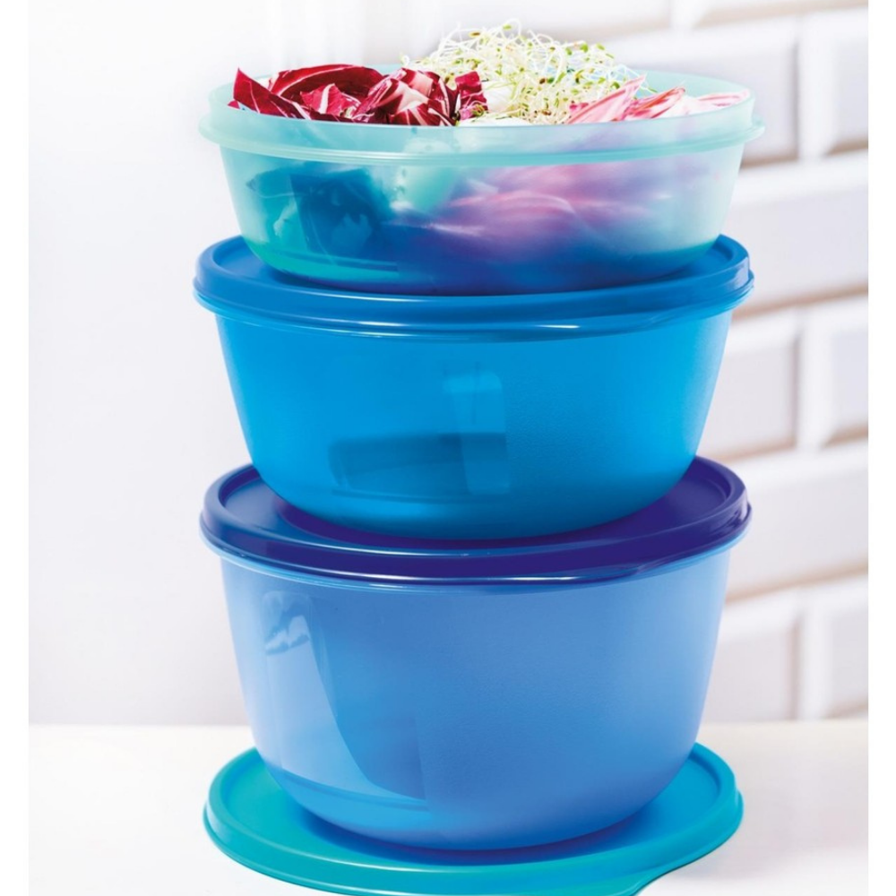 Hermetik ve su geçirmez, buzdolaplarının gözdesi: Saklama ve Servis Kapları! - Çizilmeleri önlemek için dış kısmı dokulu yapıya sahiptir. - Havayı dışarı atmak ve gıda korumasını optimize etmek için kapaklar üzerinde sekme bulunmaktadır. - Taşıması kolaydır. - Her biri 1L, 1.5L ve 2L kapasiteye sahiptir. 1 L: 19,5 cm Ø x 6 cm Y 1,5 L: 19,5 cm Ø x 8,5 cm Y 2 L: 19,5 cm Ø x 11,5 cm H