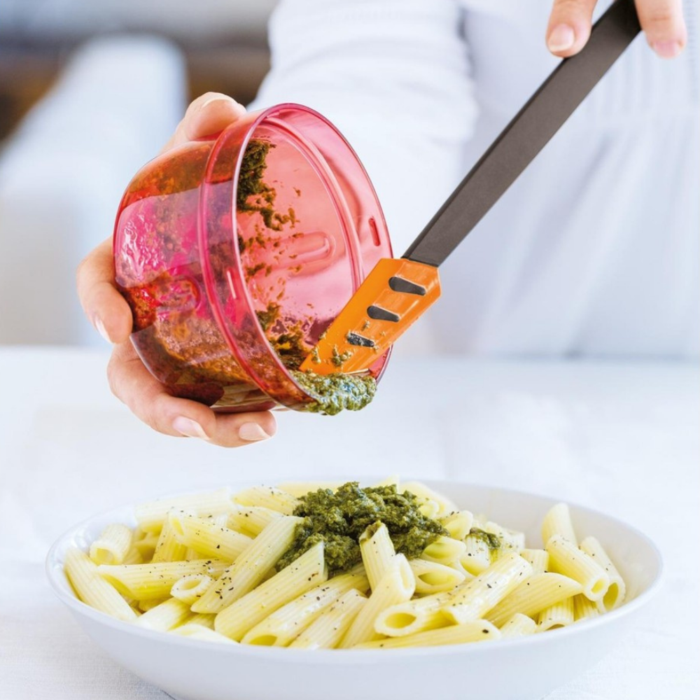 Silikon Spatula İnce her köşeye erişmeye geldi! Bulaşıkları çizmeden tüm karışımlar, tarif hazırlıkları için idealdir. Dar silikon başlık ile küçük açıklıkları olan bardakları ve şişeleri bile tamamen kazıyabilirsiniz! Tüm yiyecekleri karıştırmak ve toplamak için yuvarlatılmış kenarları ve dik açılı özel olarak tasarlanmış bir şekli vardır. Derin kaplara veya küçük çaplara erişmek için uzun, sert sap, 150°C'ye dayanıklı, sıcak ve soğuk çalışmaya dayanıklı bir spatuladır. Silikon Spatula İnce'yi asmak için delikli sapı da vardır. Dayanıklı, bulaşık makinesinde yıkanabilen Silikon Spatula İnce, hem UltraPro Fırın Kapları hem de tencere serilerimizle kullanım için idealdir. Paslanmaz çelik tencere, yapışmaz tava, mikrodalga tencere ve fırın kapları ile kullanılabilir. Metalik olmadığı için tencerelerinizi çizik ve izlerden korumak için mükemmeldirler. Silikon Spatula İnce'nin rengi sadece lekeleri gizlemekle kalmaz, aynı zamanda her mutfağa zamansız bir görünüm katar.