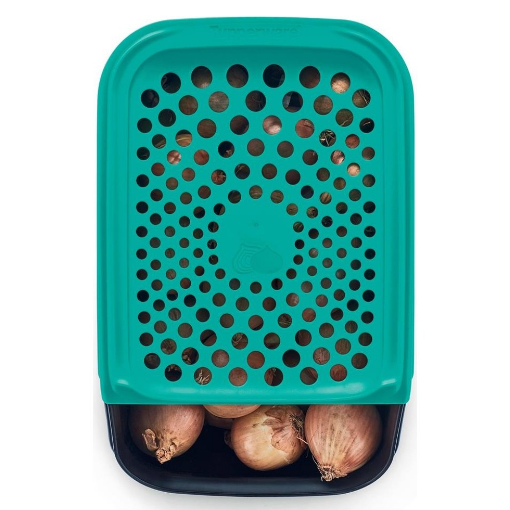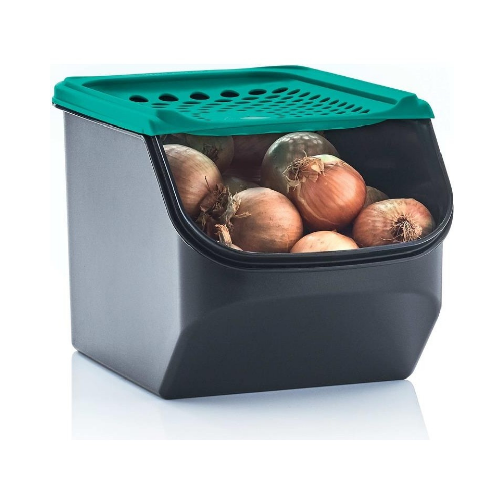 Eşsiz tasarımlı soğan ve sarımsak saklama kabımızın delikli kapağı, iyi hava sirkülasyonu için optimum boyutta deliklere sahiptir. Soğan, sarımsak ve soğanlarınızı saklayabilir, onları dış ışıktan koruyan opak tabanı sayesinde ömrünü uzatabilirsiniz. Ayrıca soğan ve sarımsak kabı nemi en aza indirerek içeriği sağlam ve taze tutar. Kolaylıkla saklamak için diğer Soğan/Sarımsak Saklayıcılar ile üst üste istiflenebilirler. Soğan/Sarımsak Saklayıcı, 2,5-3 kg'a kadar soğan ve 2,5 kg sarımsak saklayabilir. Boyut: L 27,2 × B 18,3 × Y 18,7 cm